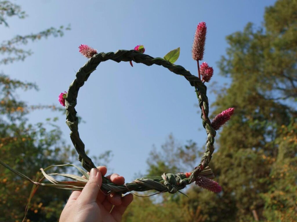 上午的行程,族人帶我們認識和西拉雅族息息相關的植物,包含編織花環所需的雞冠花、圓仔花,祭祀阿立祖(或稱太祖)所使用的澤蘭等等,其中印象最深刻,也是飯桌上的主角「刺仔」更是一鍋道地雞湯的靈魂所在。